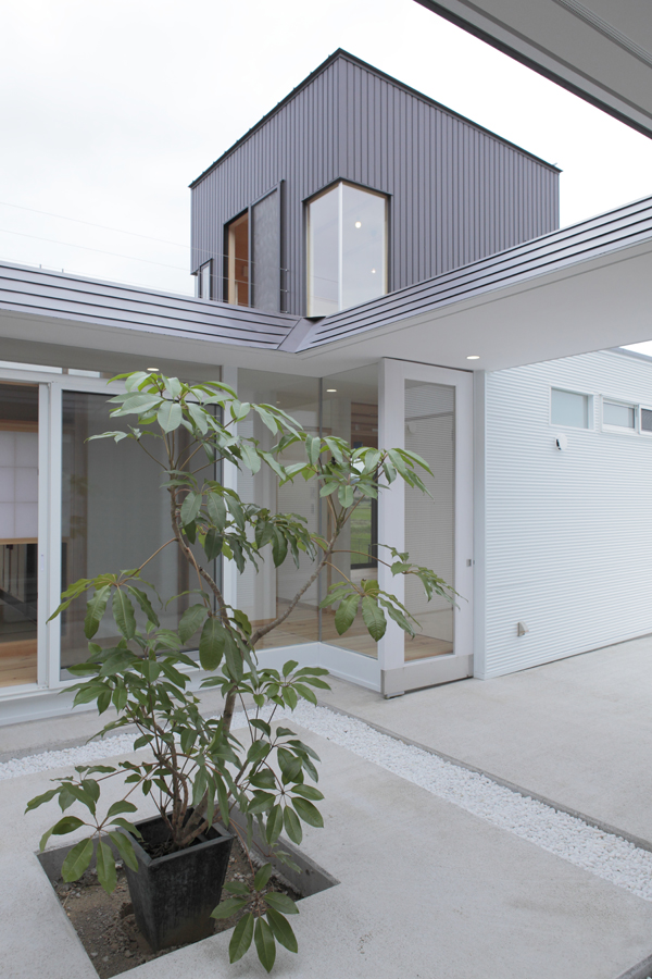 複雑なプログラムを4つの棟と中庭が