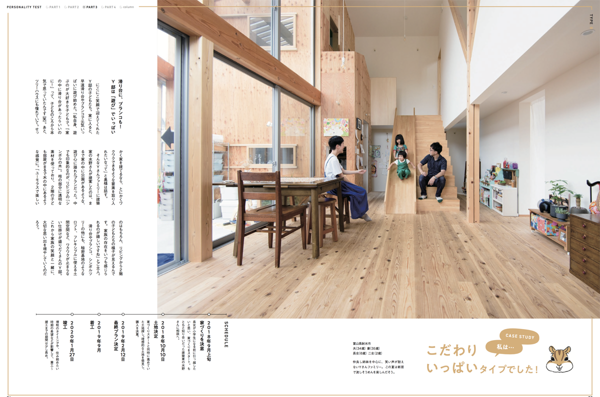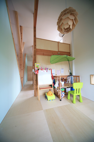 この家は遊園地のように楽しい。滑り台とブランコのあり、リビングには大きなツリーもある。